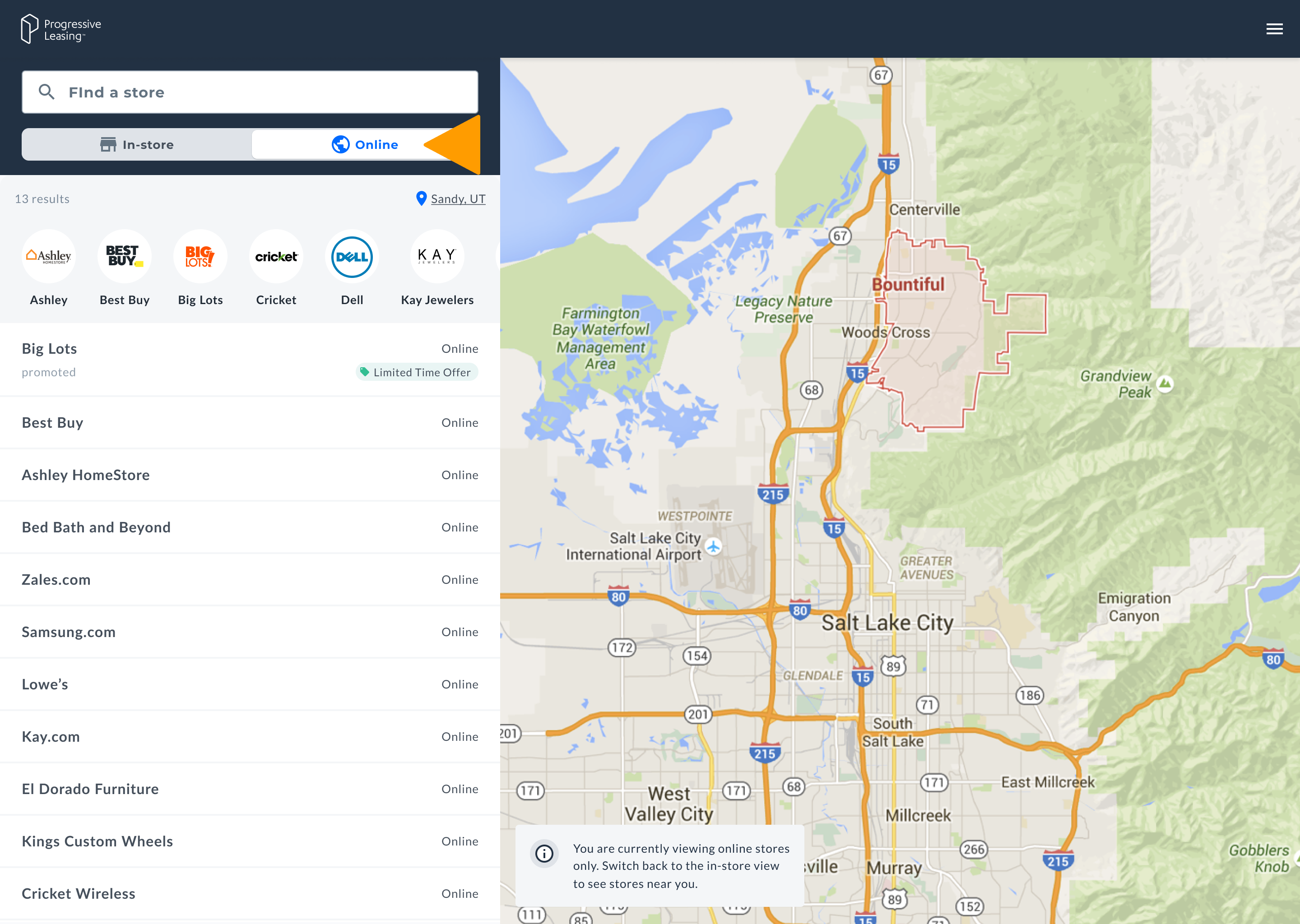 Where can I find a retailer that offers Progressive Leasing?